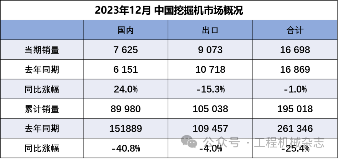 2023年12月当月销售各类汽车起重机1314台,同比下降21.9%,其中国内867台,同比下降19.3%;出口447台,同比下降26.5%。2023年12月当月销售各类履带起重机208台,同比下降15.4%,其中国内77台,同比下降16.3%;出口131台,同比下降14.9%。2023年12月当月销售各类随车起重机1738台,同比增长105%,其中国内1373台,同比增长106%;出口365台,同比增长104%。2023年12月当月销售各类塔式起重机1015台,同比下降23.9%,其中国内894台,同比下降30.4%;出口121台,同比增长142%。2023年12月当月销售各类叉车99670台,同比增长31%,其中国内61327台,同比增长42.7%;出口38343台,同比增长15.8%。2023年12月当月销售各类压路机913台,同比增长2.24%,其中国内415台,同比下降0.72%;出口498台,同比增长4.84%。2023年12月当月销售各类摊铺机84台,同比增长40%,其中国内62台,同比增长14.8%;出口22台,同比增长267%。2023年12月当月销售各类升降工作平台13857台,同比增长11.4%,其中国内6154台,同比下降23.5%;出口7703台,同比增长75.4%。2023年12月当月销售各类高空作业车397台,同比增长126%,其中国内392台,同比增长127%;出口5台,同比增长66.7%。