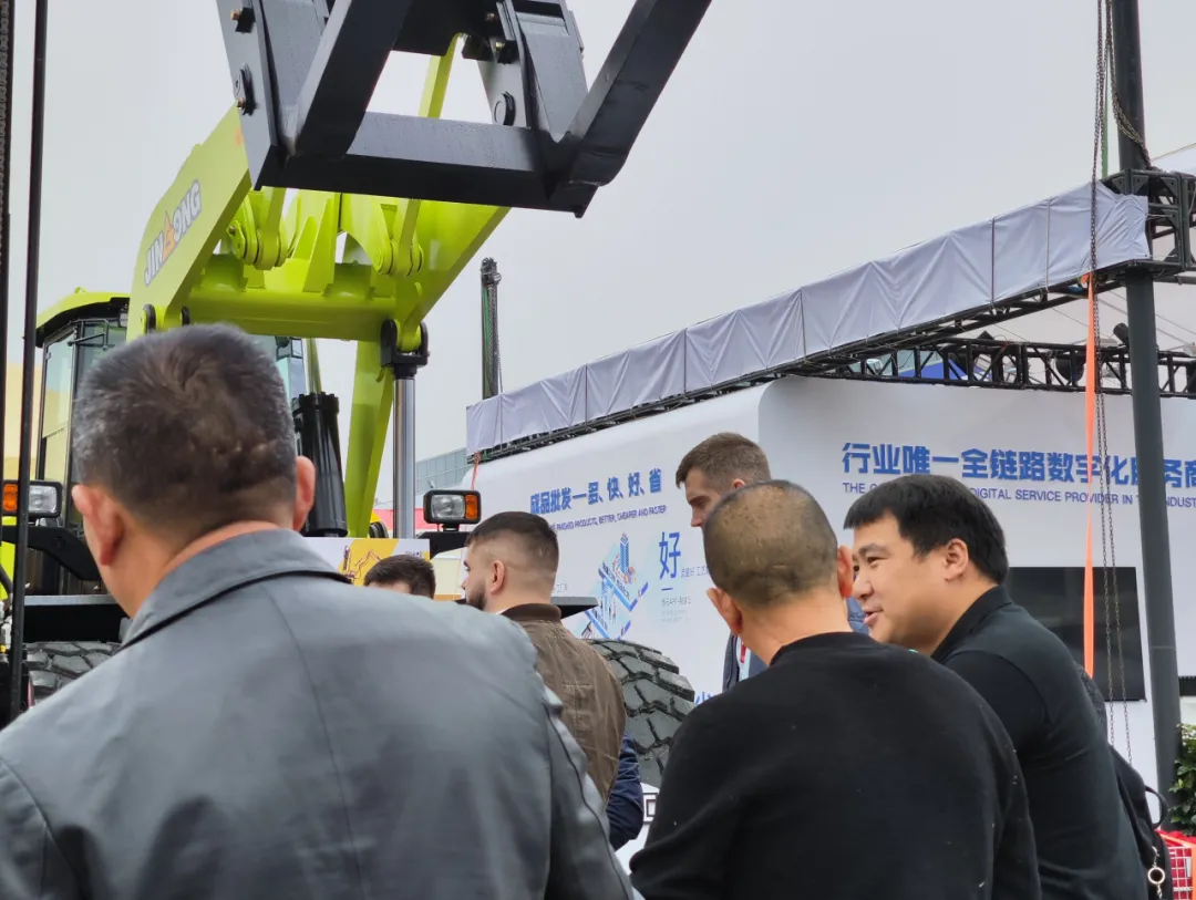 其中全球首款32吨电动叉装机JGM771FT32E所具备的“更智能、更环保、更高效”的产品特性,再加上可观的经济效益(经测算每年能为客户增收30万元以上的直接收益),吸引了多个石材行业客户留下购机意向。